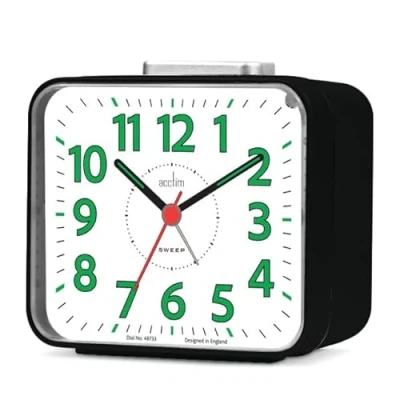 AmazonSMOOTH OPERATION: Features non-ticking sweep movement, perfect for light sleepers and quiet environments CLEAR DISPLAY: Large, easy-to-read numbers with clear digits and markers. Luminous hands and backlight for excellent visibility in low light conditions ALARM FEATURE: Equipped with a loud bell alarm system to ensure you wake up on time, even if you're a heavy sleeper COMPACT DESIGN: Smart, modern square design in classic finish. Ideal for bedside tables RELIABLE TIMEKEEPING: Precise quartz movement ensures accurate time-keeping, while the sweep second hand moves smoothly around the dial