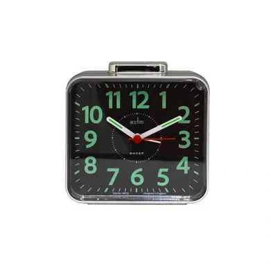 The Acctim Parker Silver Analogue Alarm Clock blends classic style with modern features for peaceful, reliable timekeeping in any bedroom or office.Enjoy restful nights thanks to the quiet, non-ticking sweep movement, ideal for light sleepers. The luminous tipped hands and clear white dial make checking the time easy, even in low light. Its sleek, contemporary square design brings a stylish touch to your bedside or workspace.Features include a loud bell alarm for dependable wake-ups, a snooze function for gentle mornings, and a convenient backlight activated by pressing the clock face. The bold hands and precise minute markers ensure effortless time-telling at a glance.