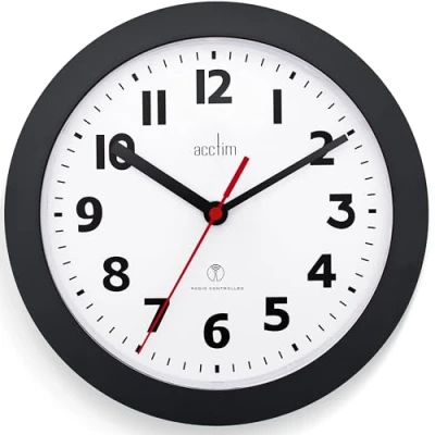 Harts of SturThe Acctim Parona Wall Clock in Black is radio controlled and made from plastic. Perfect for classrooms, offices, kitchens and more! Also available separately in Red. Acctim Parona Wall Clock has a 23cm diameter.1 year guarantee