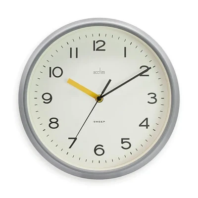 This retro-inspired Acctim Rhea Pigeon Grey Wall Clock brings quiet timekeeping and vintage style to any living space.Enjoy a peaceful atmosphere thanks to the non-ticking sweep movement, while the deep profile case and dual colour hands add a distinctive touch to your décor. Its classic design makes it a versatile choice for kitchens, lounges or offices.Features a plastic and glass lens for durability and clarity. Designed for wall mounting with a clear 29cm face for easy viewing.