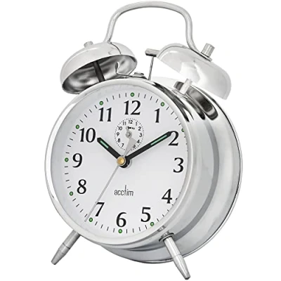 Harts of SturFor those who prefer a more traditional alarm clock, the Acctim Saxon Alarm Clock in Chrome is the perfect option. This classic aesthetic clock feature a metal case, feet and bells as well as a mechanical wind-up movement. Finished with luminous tipped hands and bell alarm with separate alarm time dial. Dimensions: 16.7cm x 11.7cm x 6cm.1 year guarantee