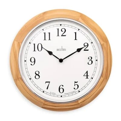 This classic Acctim Winchester Light Wood Wall Clock features a crafted wooden case and chrome bezel, adding timeless style to any living space.The elegant design brings a warm, traditional touch to your home, while the domed glass lens ensures clear visibility and the chrome bezel adds a refined finish.Built with a precision quartz movement, this clock offers reliable timekeeping. The crafted wooden case and domed glass lens highlight its quality construction.