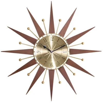 Acctim Wolcott Dark Wood Clock, complete with mid-century design elements that see clean lines and muted tones, combined with natural and manmade materials.A design movement prevalent from the 1940s to the 1970s, it is now firmly back in fashion in the 2020s. Wolcott embodies everything great about the design era with an effortless blend of wood and metal and complementary tones. This clock is a classic icon.Dimensions: L3.7cm x W49cm x H49cm.