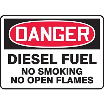 Accuform MCHL270VA Aluminum Safety Sign, Legend "DANGER DIESEL FUEL NO SMOKING OPEN FLAMES", 10" Length x 14" Width, Red/Black on White