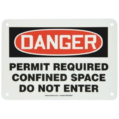 Accuform MCSP007VA Aluminum Safety Sign, Legend "DANGER PERMIT REQUIRED CONFINED SPACE DO NOT ENTER", 7" Length x 10" Width, Red/Black on White