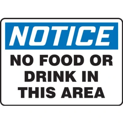 Accuform MHSK801VP Plastic Safety Sign, Legend"Notice NO Food OR Drink in This Area", 7" Length x 10" Width 0.055" Thickness, Blue/Black on White