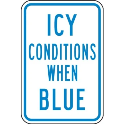 Accuform MSTF527 IceAlert Aluminum Postmount Sign, Legend"ICY Conditions When Blue", 18" Length x 12" Width 0.040" Thickness, Blue on White