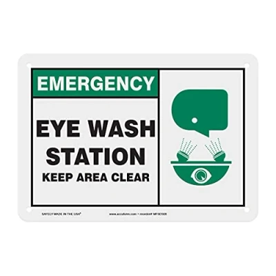 Accuform Plastic Safety Sign,"Emergency Eye WASH Station Keep Area Clear", 7" x 10", MFSD928VP