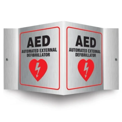 Accuform PSM300 Projection Sign 3D, Legend"AED AUTOMATED External DEFIBRILLATOR", 6" x 5" Panel, 0.025" Thick Brushed Aluminum, Red/Black on Aluminum