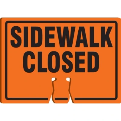 Accuform Signs FBC737 Plastic Traffic Cone Top Warning Sign, Legend SIDEWALK CLOSED, 10 Length x 14 Width 0.060 Thickness, Black on Orange by