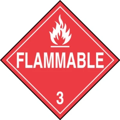 Hazard Class 3 DOT placard Legend "FLAMMABLE 3" with graphic Made of plastic White on red color combination Measures 10-3/4-inches width by 10-3/4-inches length