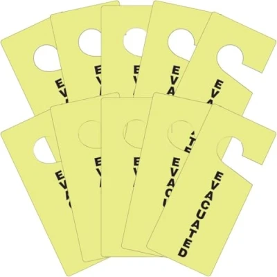 Quickly identify if a room or area has been evacuated 9" x 4" tag is bonded on both sides with glow material and message to be seen in low-light conditions Any light source 'charges' the photoluminescent material Message appears on both sides