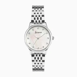 ArgentoAdd an elegant choice to your everyday accessories with this beautiful watch from Accurist. Crafted with silver-toned stainless steel, this beautiful watch features a mother of pearl dial with diamond hour markers, silver hands, and a silver metal bracelet. Timeless and special, this watch would make a beautiful gift for someone special. Stainless steel Mother of pearl dial Silver metal bracelet Water resistant to 50 meters High precision Japanese quartz Silver hands Diamond hour makers Engravable back Minimum length of bracelet: 148mm Maximum length of bracelet: 197mm Strap width: 14mm