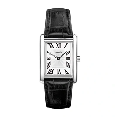 Accurist Rectangle 26mm Quartz Watch in White with Analogue Display, and Black Leather Strap 71001