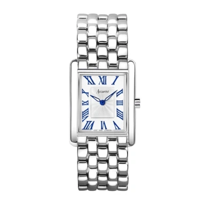 Accurist Rectangle 26mm Quartz Watch in White with Analogue Display, and Stainless Steel Bracelet 71007