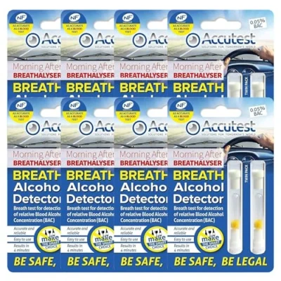Accutest Disposable Breathalyser 16 Tests EU France Certified, Quick Alcohol Tester Kits UK & Breathalysers