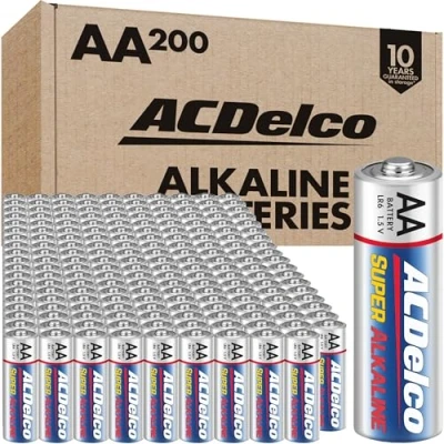 DOUBLE A BATTERIES: This convenient bulk pack of 200 batteries comes in easy reclosable packaging so that you can keep them easily stored for long-term use, and our AA super alkaline batteries feature 1.5 volts of long lasting power so that you can keep your professional and household devices running for longer. These are NOT rechargeable batteries EVERYDAY DEVICES: Each ACDelco AA battery delivers optimal power to common everyday household devices such as wireless mice, flashlights, clocks, calculators, remote controls, game controllers, digital cameras, computer mice, electronic toys and more, making these an excellent long-term value for around the home LONG LASTING POWER: ACDelco super alkaline batteries deliver long lasting maximum power that is consistent and reliable for high-drain devices 10-YEAR SHELF LIFE: All ACDelco alkaline batteries are built to last with an impressive ten-year shelf life. We advise keeping your batteries in a cool dry place and out of the sun. Stainless steel coating prevents leakage so that you can keep them easily stored long-term ENVIRONMENTAL IMPACT: Our 1.5-volt alkaline batteries contain no mercury or cadmium, making them a smart choice for your family and for the environment