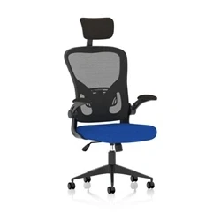 Ace Executive Fabric Seat Stevia Blue Mesh Chair With Folding Arms
