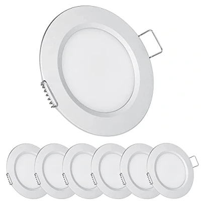 acegoo 12V LED Campervan Recessed Mount Ceiling Light, 2.5W 6 Pack CRI 93 Caravan Boat Downlight Spot Lights for Van Cabin Truck Motorhome Sailboat Under Cabinet Kitchen Bathroom, Silver 3000K