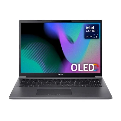 The Acer Aspire 16 combines performance and portability. The Intel® Core™ Ultra 5 processor isn't just powerful, it's super-efficient, too. It uses Intel® AI Boost for an extra kick in AI applications - you can access all of them in the AcerSense app. You can get up to some creative work or light gaming thanks to Intel® Arc™ graphics. And the 16" 2K OLED display brings your content to life with vibrant colours and deep contrast. Good to know- The OLED screen's got a 120 Hz refresh rate for perfectly smooth motion - With 16 GB of DDR5 RAM you can multitask like you've never multitasked before - The Full HD webcam will make you look great on work calls and catchups with friends - Browse, stream and download faster than ever before thanks to WiFi 6E - You can hook up monitors, transfer data or charge the laptop using the Thunderbolt 4 ports - No more typing out passwords - the fingerprint reader is much more convenient ___________________________________________________________________________ Intel, the Intel logo, Celeron, Intel Atom, Intel Core, Intel. Experience What's Inside, Intel Inside, the Intel Inside logo, Intel Unite, Iris, Pentium, Thunderbolt, the Thunderbolt logo, and Ultrabook are trademarks of Intel Corporation in the U.S. and/or other countries.