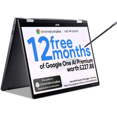 Get stuff done with the Acer Spin 714. Its 14" Full HD IPS touchscreen provides amazing colours and wide viewing angles, and you can fold it 360° to turn your laptop into a tablet. Great both for work and for catching up on Netflix. It can run for up to 10 hours on a single charge, so you can leave the charging brick at home. And at just 1.37 kg, it won't weigh you down either.Good to know- ChromeOS is easy and safe to use and can run all your favourite apps from Google Play Store- The Intel® Core™ i3 processor is just right for everyday browsing, emailing and social networking- Browse, stream and download faster than ever before thanks to WiFi 6E- Starting up your laptop and multitasking will be superquick with the 256 GB SSD and 8 GB RAM- The Quad HD webcam will make you look awesome on work calls and catchups with friends- With two Thunderbolt 4 ports, a USB 3.1 ports, and an HDMI 2.1 , you'll have plenty of ways to hook up accessories- Running out of juice? Just 30 minutes of charging gives you up to 5 hours of battery life - It's passed the MIL-STD 810H durability test, so you can be sure it'll survive everyday knocks and bumps___________________________________________________________________________Intel, the Intel logo, Celeron, Intel Atom, Intel Core, Intel. Experience What's Inside, Intel Inside, the Intel Inside logo, Intel Unite, Iris, Pentium, Thunderbolt, the Thunderbolt logo, and Ultrabook are trademarks of Intel Corporation in the U.S. and/or other countries.