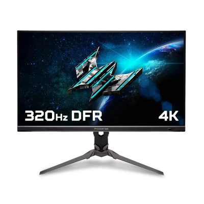 This Acer Predator gaming monitor is dual mode, so you can choose if you want more pixels, of FPS. It can do Full HD at 320 Hz if you need detail, and 4K at 160 Hz if you need frames. Either way, the IPS display is packed with contrast and vibrant colours, so your AAA titles will look amazing. And the 0.5 ms response time means no blurring or ghosting. Good to know - AMD FreeSync Premium synchronises the monitor with your GPU to get rid of any screen tearing and blurring - just a nice and crisp picture - VESA DisplayHDR 400 True Black means a sharp contrast and great brightness - perfect for the darker spots of the map - The ErgoStand lets you fully adjust the screen, so you'll get just the right angle easily - Hook up your favourite peripherals using its DisplayPort and HDMI - Its built-in speakers mean you're good to go right out of the box