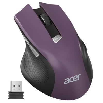 acer Wireless Mouse, 3 Adjustable DPI Ergonomic Computer Mouse 2.4GHz USB Receiver, 6 Button, Cordless Optical Tracking, Battery Indicator, Portable Mice for Laptop, PC, MacBook Pro (Purple)