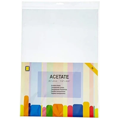 Acetate sheets - 5 A3 sheets. For making transparent greeting cards or for covering documents. They are also suitable for making shaker cards and for painting them with glass paint or permanent markers. Available in A3, A4, A5 and 30,5 x 30,5 cm (12.5 x 12.5 inch) sheets. Acetate sheets have a thickness of 250 microns. 3.1015 3.1015 JE3.1015 MPN 3.1015