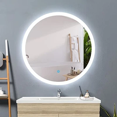 Acezanble Round Bathroom Mirrors with Lights,600mm Anti fog Touch Sensor,6000K Cool White led Light,Wall Mounted,IP44 Dustproof Waterproof 3cm Edge