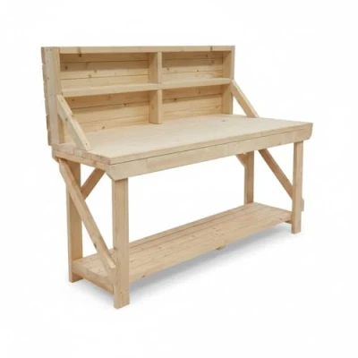 INTEGRATED BACK PANEL FOR STORAGE – Features a robust timber backboard that protects your wall and prevents items from falling off the rear. This vertical panel is the perfect surface for adding tool clips, hooks, or power strips, keeping your most-used equipment at eye level. SOLID C16 TIMBER CONSTRUCTION – Manufactured entirely from construction-grade 38mm x 89mm C16 kiln-dried Scandinavian timber. Unlike composite tops, this solid wood surface can take a beating—it’s built to support heavy vices, drills, and high-impact assembly work. HEAVY-DUTY STATIC STABILITY – Engineered with our signature 4-way bracing system to eliminate side-to-side wobble. As a static unit, it offers superior rigidity compared to mobile benches, providing a safe, vibration-free platform for precision joinery and engineering. REINFORCED BOTTOM SHELF – Includes a full-width lower shelf made from solid timber planks. This high-capacity storage area is designed to hold heavy tool cases, materials, and machinery, adding extra weight to the base for even greater stability. KILN-DRIED C16 TIMBER – Manufactured entirely from high-grade 38mm x 89mm C16 Kiln-Dried Scandinavian Pine. Unlike pressure-treated garden wood, our kiln-dried timber has low moisture content, ensuring superior stability, a cleaner finish, and resistance to shrinking in indoor environments.