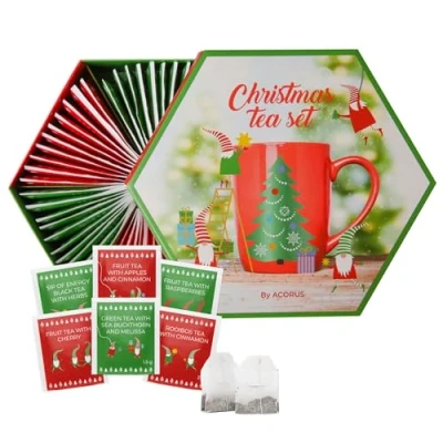 Acorus Christmas Tea Set, Natural Fruit and Herbal Gift Set Christmas, 60 Bags Individually Wrapped, Large Selection Box, 6 Flavors in Xmas Gifts for Lovers