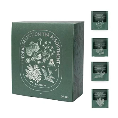 ACORUS Herbal Selection Tea Assortment Natural Gift Set of 4 Flavors Discover The Quality For Various Occasions Large 56 Bags