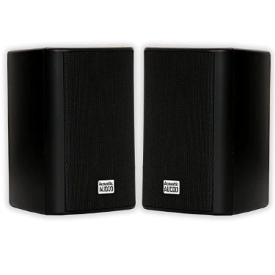 OUTDOOR MOUNTABLE WIRED SPEAKERS - Traditional passive speaker design, simply drive power from your amplifier or receiver. Full Range sound coverage with 2-way tweeter and woofer configuration WEATHERPROOF AND DURABLE - Black ABS sealed cabinets with spring loaded raw wire connectors and mounting brackets are weatherproof against rain, snow, sun, ice and more. Big sound from a compact speaker size of (H x W X D) 6" x 4.25" x 4" each HIGH QUALITY - 3" Poly Mica woofers with butyl rubber surrounds, .5" PEI dome tweeters, frequency response of 100Hz-20 kHz with 89dB at 8ohm SYSTEM REQUIREMENTS - Any amp or receiver with raw speaker wire outputs, power from your amp should be no less than 20 and no more than 250 watts per channel, CL3 or raw speaker wire to connect your amp to the speakers WHAT'S IN THE BOX - 2 Acoustic Audio by Goldwood AA351B speakers, mounting brackets with hardware, instruction manual. Use for home theater surround sound, whole house audio systems, business or retail installations, patios, decks, pool and spa settings Refer to the User Manual under Technical Specification.