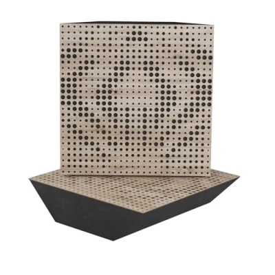 APPLICATIONS: These bass traps, made of perforated wood and acoustic foam, are excellent for low and mid frequencies. For optimal results, they are installed in corners between walls, or at the intersection of a wall and ceiling. Most commonly used in: Recording studios, home theaters, music rooms, office spaces, rehearsal rooms, auditoriums, conference rooms, cafeterias, hotels, bedrooms, churches, game rooms, podcast rooms, etc. ACOUSTIC SOLUTION: Improve the acoustics of your room with our high quality acoustic wood bass traps. These bass traps are the perfect solution for bass control, providing effective sound absorption and low-frequency hum suppression in any environment. Compared to conventional foam bass traps, our wooden acoustic bass traps will show significantly better results. We have a variety of exclusive designs and colors to choose from, allowing you to choose the perfect solution to suit your decor. FEATURES: Absorption and Diffusion | ABSORPTION FREQUENCY: Low Frequencies | OVERALL NRC: 0.44 | SCATTERING RANGE: 63Hz to 2000Hz | MATERIAL: Laminated HDF and Acoustic Foam | DIMENSIONS: 500x500x155mm (19.7x19.7x6 inches) | BOXES OF: 2 units. - area coverage = 0.5m² / (5.4ft²) INSTALLATION OPTIONS: Each bass trap comes with special mounting brackets that allow you to easily mount the trap in a corner. To attach a bass trap to a corner where a wall and ceiling intersect, we recommend using a combination of our brackets and adhesive. It is best to use construction adhesive, the so-called “liquid nails”. CUSTOMER SUPPORT: Our team is committed to providing a positive experience with every order. If you encounter any issues with your product, you can reach out through your Amazon account — we're always ready to assist.
