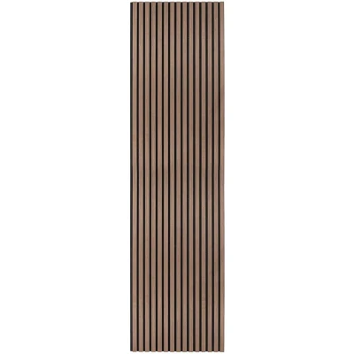 General description Redefine your space with these striking dark walnut wood effect acoustic slatted wall panels, seamlessly blending sophisticated style with impressive sound absorption for a truly transformative aesthetic. Perfect for homes, offices, or creative studios, these panels effortlessly elevate interiors while improving acoustic performance. Whether you're creating a feature wall or enhancing the ambience of a room, these panels strike the ideal balance between form and function. Technical specifications Colour: Dark Walnut Weight: 11kg Slat Material: MDF & Wood Veneer Backing Material: 9mm Thick Felt Height: 2400mm / 240cm / 94.5” Width: 600mm / 60cm / 23.6” Depth: 21mm / 2.1cm / 0.8” Slat Dimensions: 27mm W x 12mm D Space Between Slats: 13mm Installation Designed to mount directly onto walls or ceilings Includes a convenient fixing kit for easy installation Usage Ideal for creating feature walls Enhances the ambience of any room Perfect for professional workspaces or