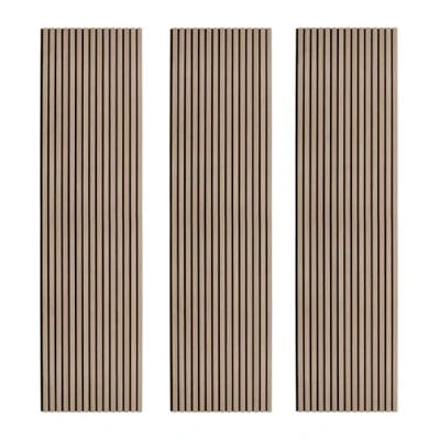 Acoustic Slat Wall Panels x 3 Light Walnut Luxury 3D Wood Veneer Modern Feature Slatted Panelling Interior or Ceiling 2400mm 600mm Felt Backing Sound Absorbing Easy Installation Fixing Kit