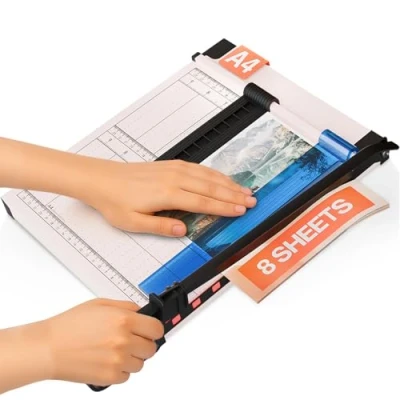 Sharp & versatile cutting - This paper cutter cuts up to 8 sheets of paper at once with a durable tungsten steel blade—perfect for all your photos, cards, cardboard (max 200g/m²), laminates & more. Magnetic precision guide - The paper cutter features a movable side stop featuring magnetic hold, ensuring you get perfectly measured, slip-free cuts every time. Safe & stable use - Work with confidence using two-handed operation, a removable pressure bar, and anti-slip feet designed for maximum safety and control. Accurate measurements - Quickly align materials with the built-in scale in cm/inch and pre-set paper sizes (B7 to A4), making setup fast and frustration-free. Focus on customer satisfaction - With over 1 million satisfied customers across Europe, we always strive to meet your needs. ACROPAQ stands for high-quality products and fast, reliable customer service.