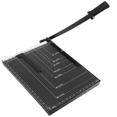 Exceptional Cutting Capacity - With its ability to cut up to 8 sheets of paper in a single pass, this lever-action paper cutter ensures efficient and time-saving operations. Its cutting size of up to 460mm makes it perfect for handling A3 format papers and other common sizes. Durable and Safe Design - Crafted from premium steel, the paper trimmer's metal base offers exceptional durability and stability. The innovative cutting mechanism, featuring two steel bars, eliminates the need for sharp blades and reduces the risk of accidents. The locking function and antislip rubber feet provide additional safety during storage and use. Enhanced Precision - Equipped with a grid, this paper cutter allows for precise cutting in various standard formats such as A3, B4, A4, B5, A5, B6, and B7. The handy removable magnetic positioning ruler further aids accurate measurements, ensuring professional-looking results every time. User-Friendly Ergonomics - The ergonomic handle of the AGA38 makes paper cutting much easier and more comfortable. Its lightweight design, weighing just 3KG, allows for easy portability. The sleek black color adds a touch of sophistication to any work environment. ACROPAQ: With over 1 million satisfied customers across Europe, we always strive to meet your needs. ACROPAQ stands for high-quality products and excellent service. Our customer service is fast, reliable, and finds the 100% satisfaction solution for your concern.