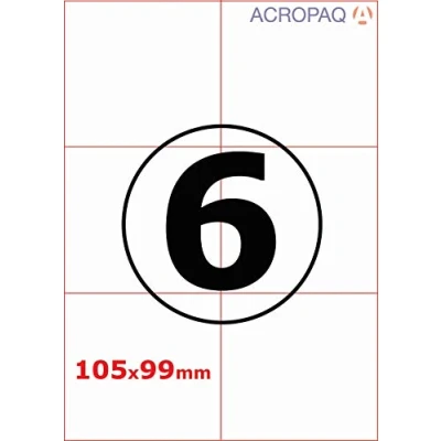 ACROPAQ White Adhesive Labels 100 A4 Sheets 600 (105 x 99mm) 6 Per Sheet for Inkjet Laser Printers, Photocopiers