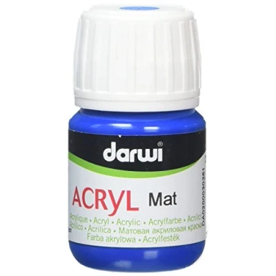 Acrylic Mat 30 ml Primary Blue. Acrylic water-based paint. Ready to use. Designed for decorating all surfaces: wood, plastic, glass, Darwi modelling paste, plaster, aluminium. Very resistant to light. Indelible when dry. Mix before using. Clean the equipment with water. MPN DA0200030261
