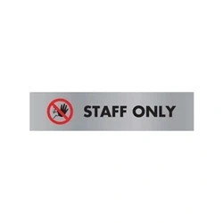 Euroffice2mm acrylic sign. Indicates staff only areas. Brushed aluminium effect background. Dimensions: 190x45mm.