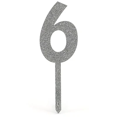 Acrylic Silver Glitter Cake Topper No.6