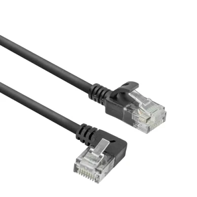 ACT CAT6A Network Cable 90 Angled Upwards, U/UTP LSZH LAN Thin 3.6 mm Slimline, Flexible Ethernet with RJ45 Connector, for Use in Data Centres, 0.25 m, Left