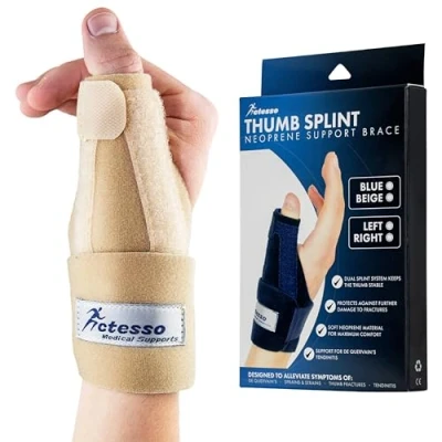 Actesso Neoprene Thumb Splint Brace Support & Relief from Injury, Wrist Tendonitis, De Quervain's, Arthritis, Trigger Sprains Left or Right Spica Available (Beige, Hand)