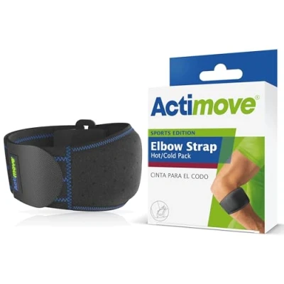 Pain relief and healing are supported through balanced warmth and medical compression. Provides pain relief from tennis and golfer elbow, epicondylitis Hot and cold pack: Elbow strap can provide extra pain relief thanks to the removable therapeutic hot and cold pack inside Comfortable to wear: The elbow strap is made with a breathable neoprene-free performance material Secure fit: The silicone dot lining helps to hold the strap in place, allowing you to continue enjoying activities and sports such as tennis, golf or basketball Actimove SPORTS EDITION Elbow Strap Hot and Cold Pack - universal sizing - ideal for left or right elbow
