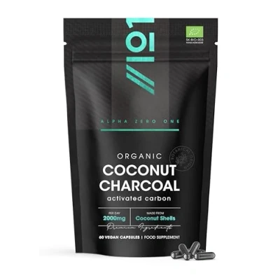 Activated Coconut Charcoal 1000mg 60 Capsules Made from Thai Shells for Bloating & Gas, Digestion Flatulence Natural Relief (20 Day Supply) by Alpha01
