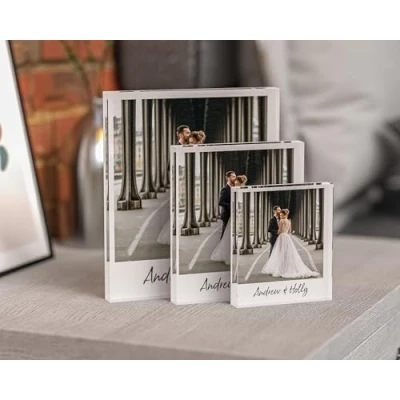 Active Film Personalised photo block, printed polaroid style, glass like plaque, custom message/name, free standing acrylic gift (Large (200mm x 230mm))