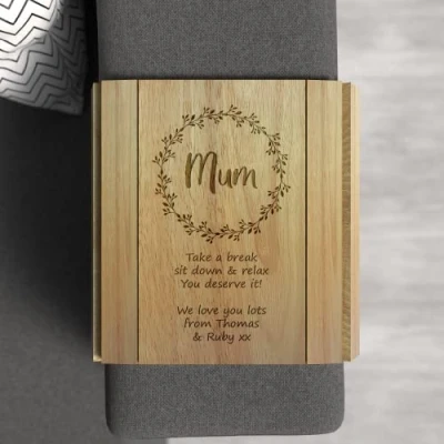 Active Film Personalised Sofa Arm Tray, Adjustable Engraved Wooden Armrest, Foldable Armchair Table, Organiser, Remote and Magazine, Drink Holder, Coffee, Tea, Biscuits/Snack (Style 8)