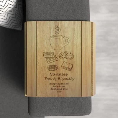 Active Film Personalised Sofa Arm Tray, Adjustable Engraved Wooden Armrest Table, Foldable Organiser, Remote and Magazine, Drink Holder, Coffee, Tea, Biscuits/Snack (Style 3)