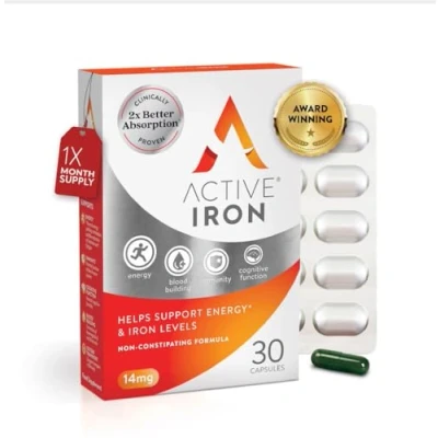 Active Iron Supplement 30 Capsules Non Constipating Fights Tiredness & Fatigue Clinically Proven to Increase Levels